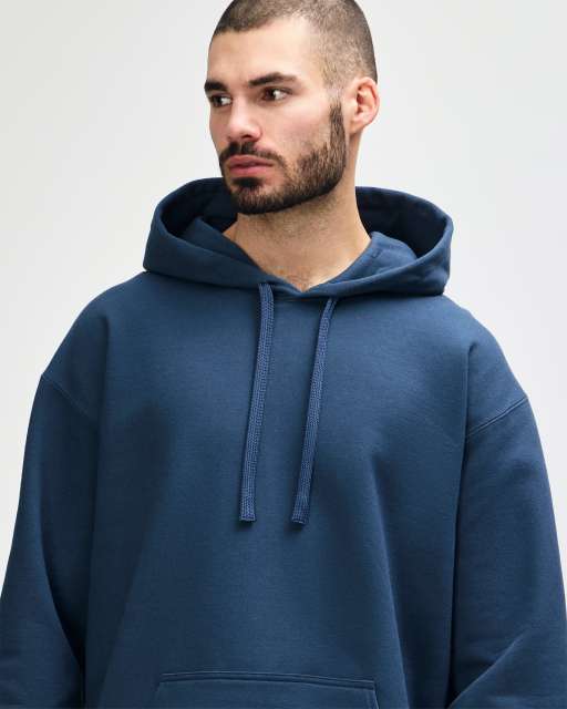 Dvostruka kapuljača od istog materijala sa širokom, ravnom vezicom usklađenom u boji