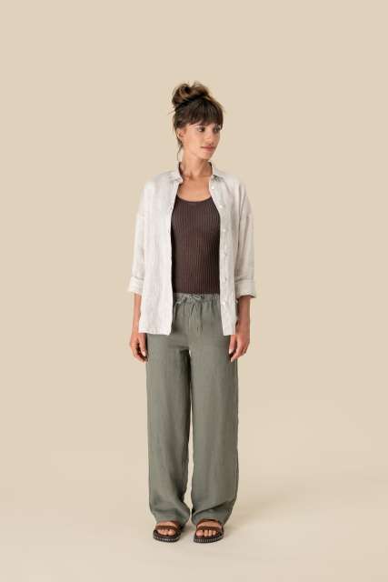 ECO-FRIENDLY LADIES’ LINEN WASHED EFFECT TROUSERS